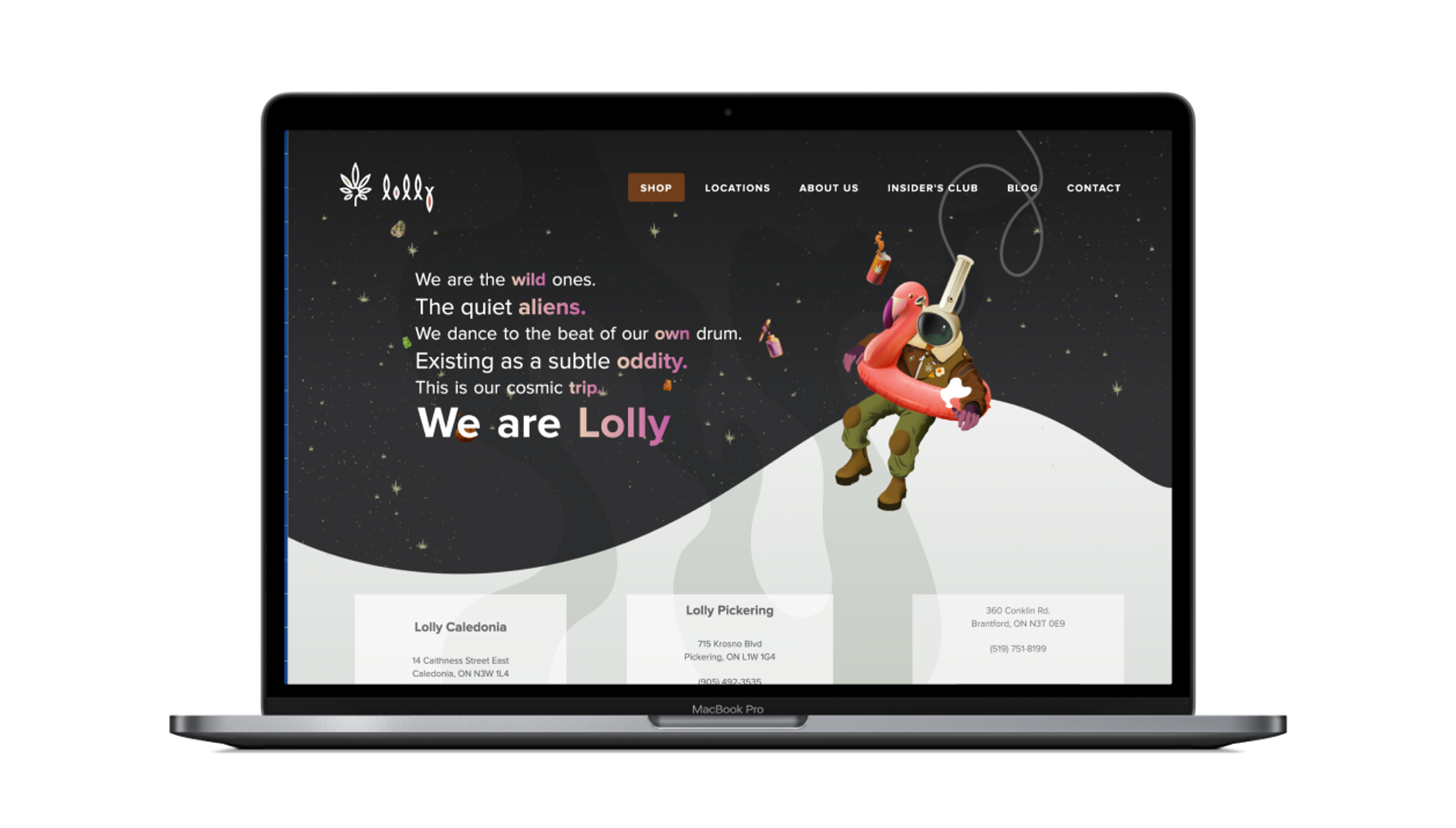 In 2020 Overdrive was hired by Danielle Braemer to develop a visual identity for a new Cannabis retail store. When we first came aboard the project, the company name, Lolly, was being debated. Investors were nervous about it sounding too childlike. We loved the name and made a visual case for its adoption. Ultimately, it won the day as it aligned well with strategy and the principal’s aspirations. It has an undeniably positive and happy tone.