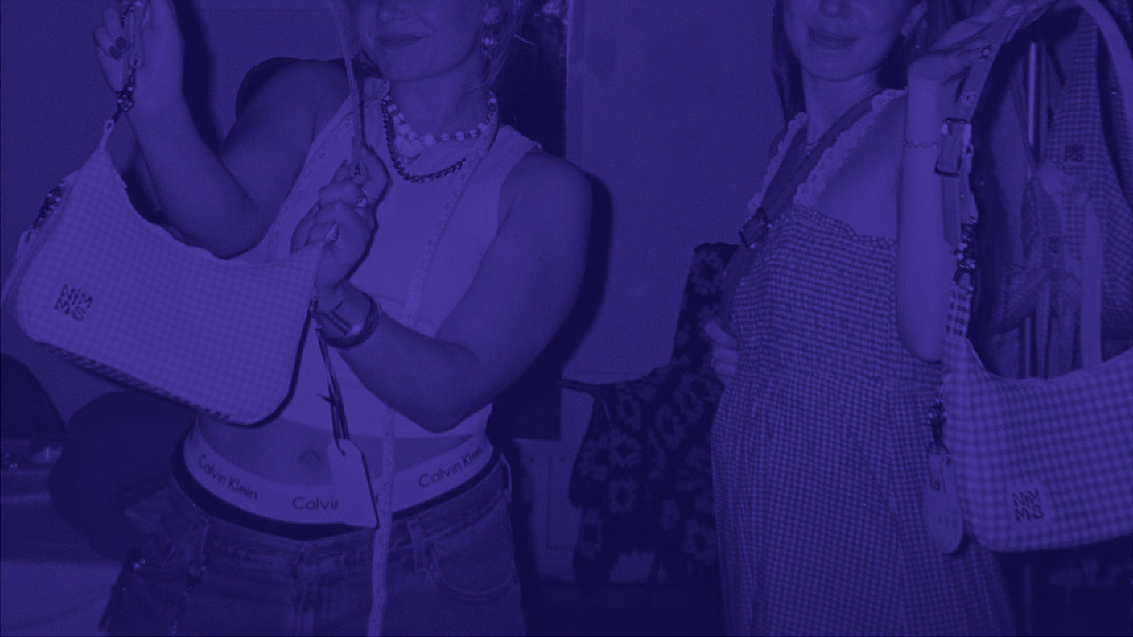 Actor Niamh Wilson found herself in a lull between projects in fall of 2023, and was looking for a distraction. Taking notice of a sewing machine, she decided to make bags for family and friends for Christmas. The fact that she’d never sewn was merely a fleeting inconvenience. After teaching herself to sew with YouTube tutorials she produced her first generation of bags, and they were a hit, with many folks suggesting that she should sell her creations. Overdrive was one of those early cheerleaders—and Niamh reached out and asked if we could build her a basic brand package. She had a simple sketch idea of a sixties mod-inspired rendering of her childhood nickname, Nimm.